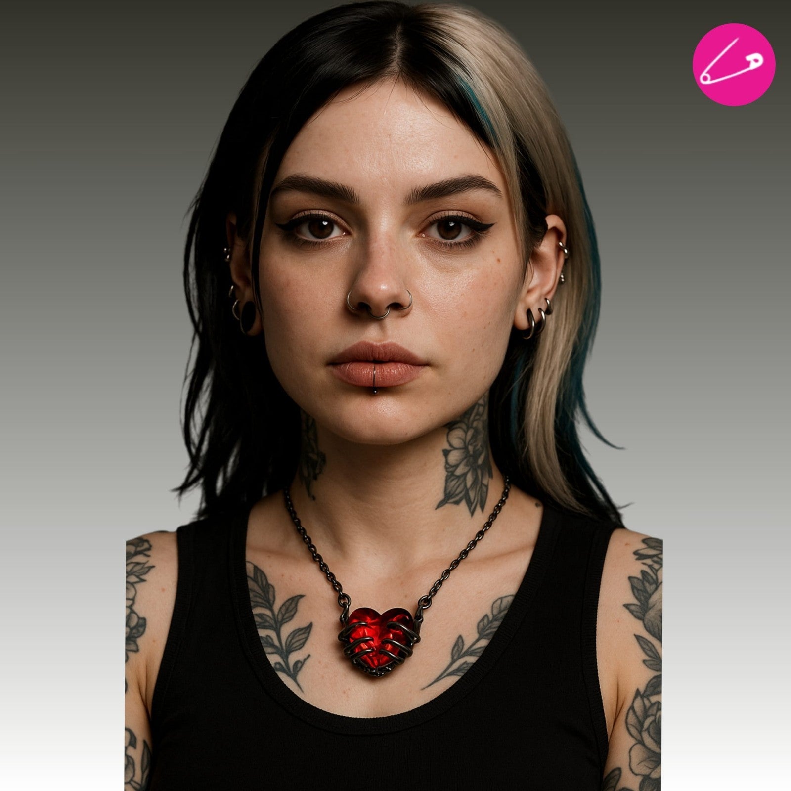 Red Caged Heart Mya Alternative Gothic Punk Rock Metal Skater Grunge Necklace