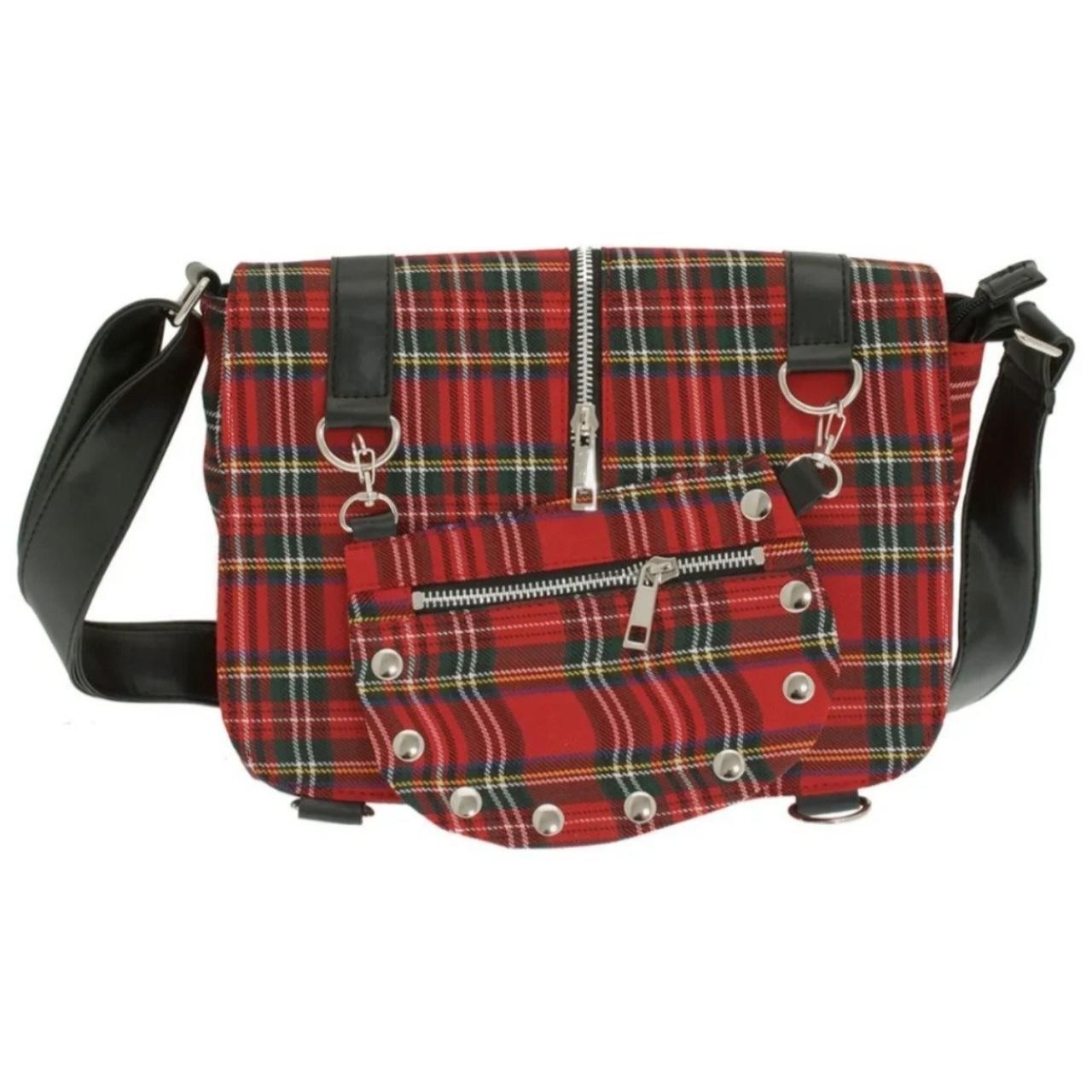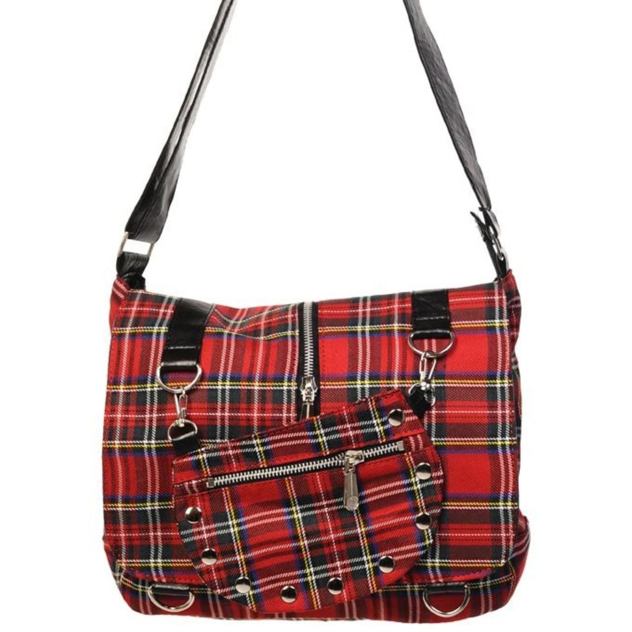 Banned Apparel Red Tartan Twice The Action Alternative Gothic Punk Rock Handbag