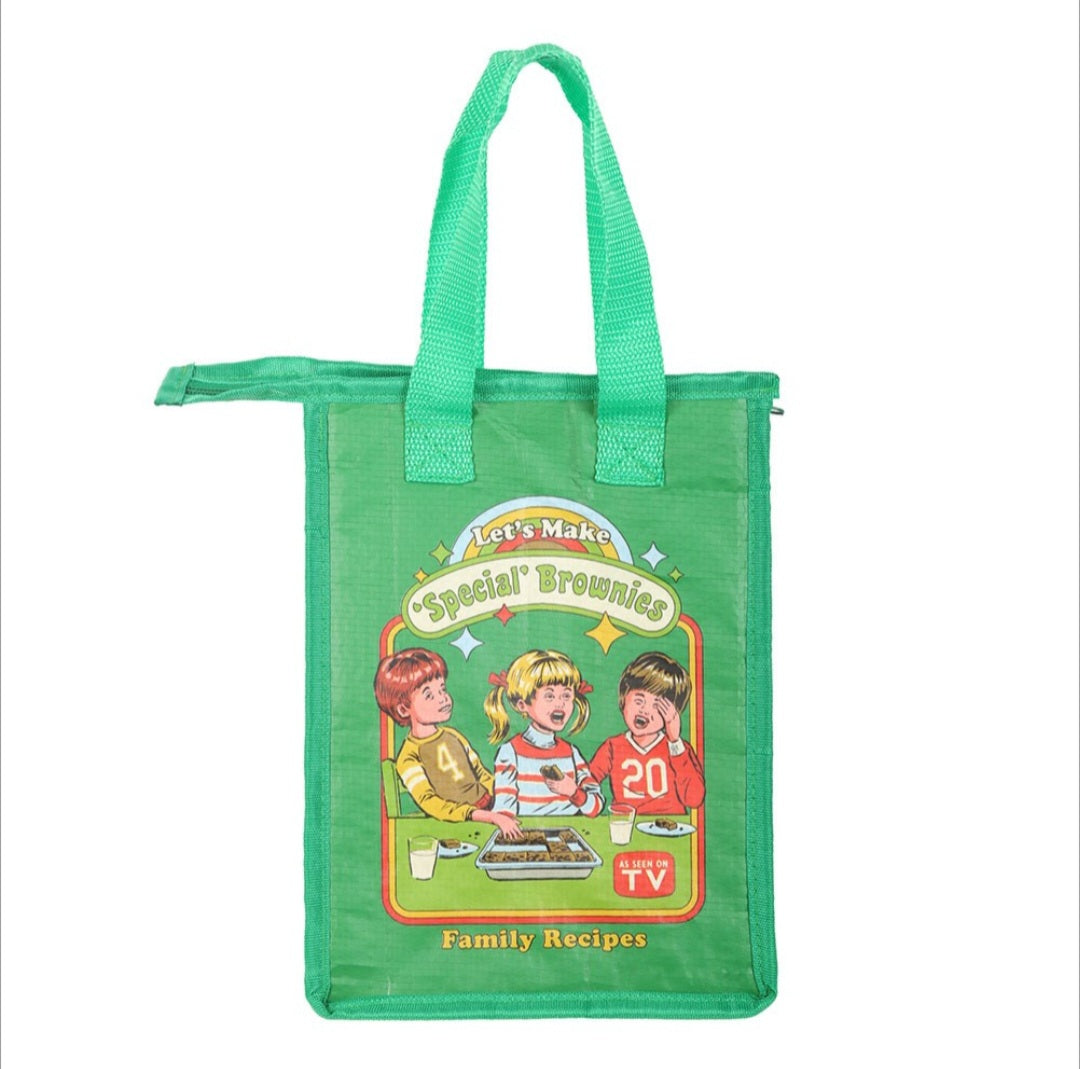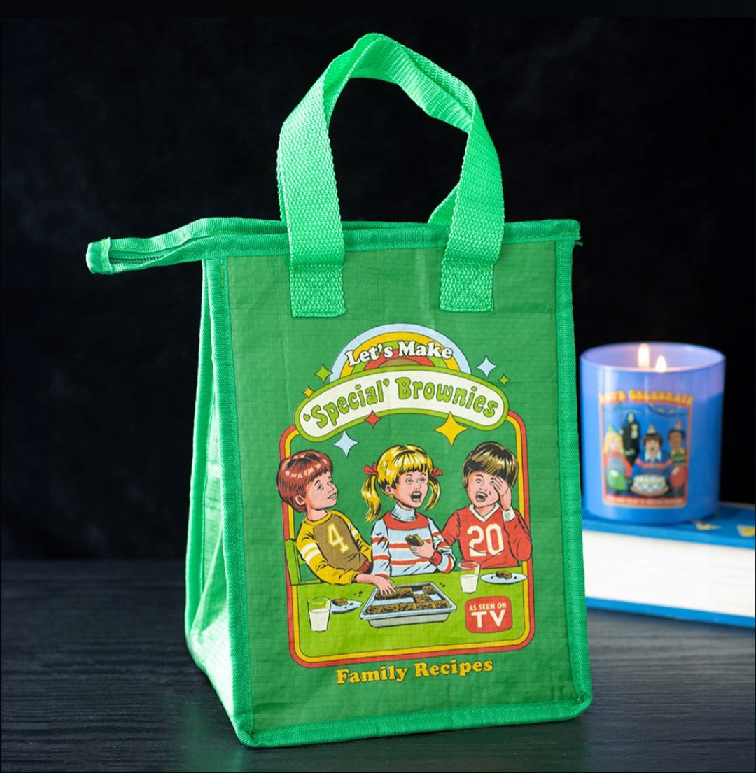 Dark humour meets everyday practicality with this Steven Rhodes “Let’s Make Brownies” lunch bag. Featuring the instantly recognisable retro illustration and tongue-in-cheek design, this reusable insulated bag is ideal for lunches, snacks, or light groceries—while quietly offending anyone who takes life too seriously.