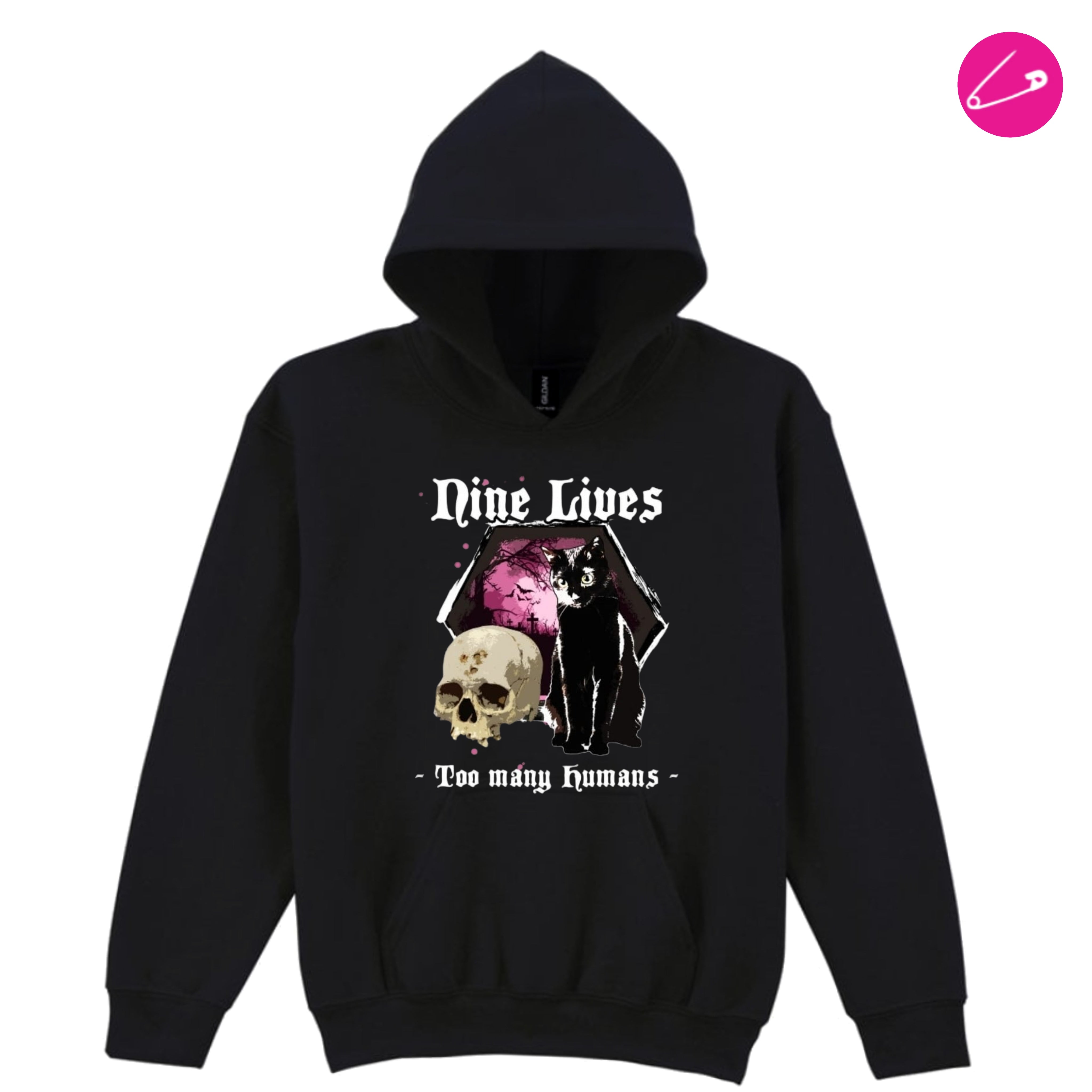Nine Lives Too Many Humans Goth Punk Emo Alternative Funny Cat Animal Hoodie