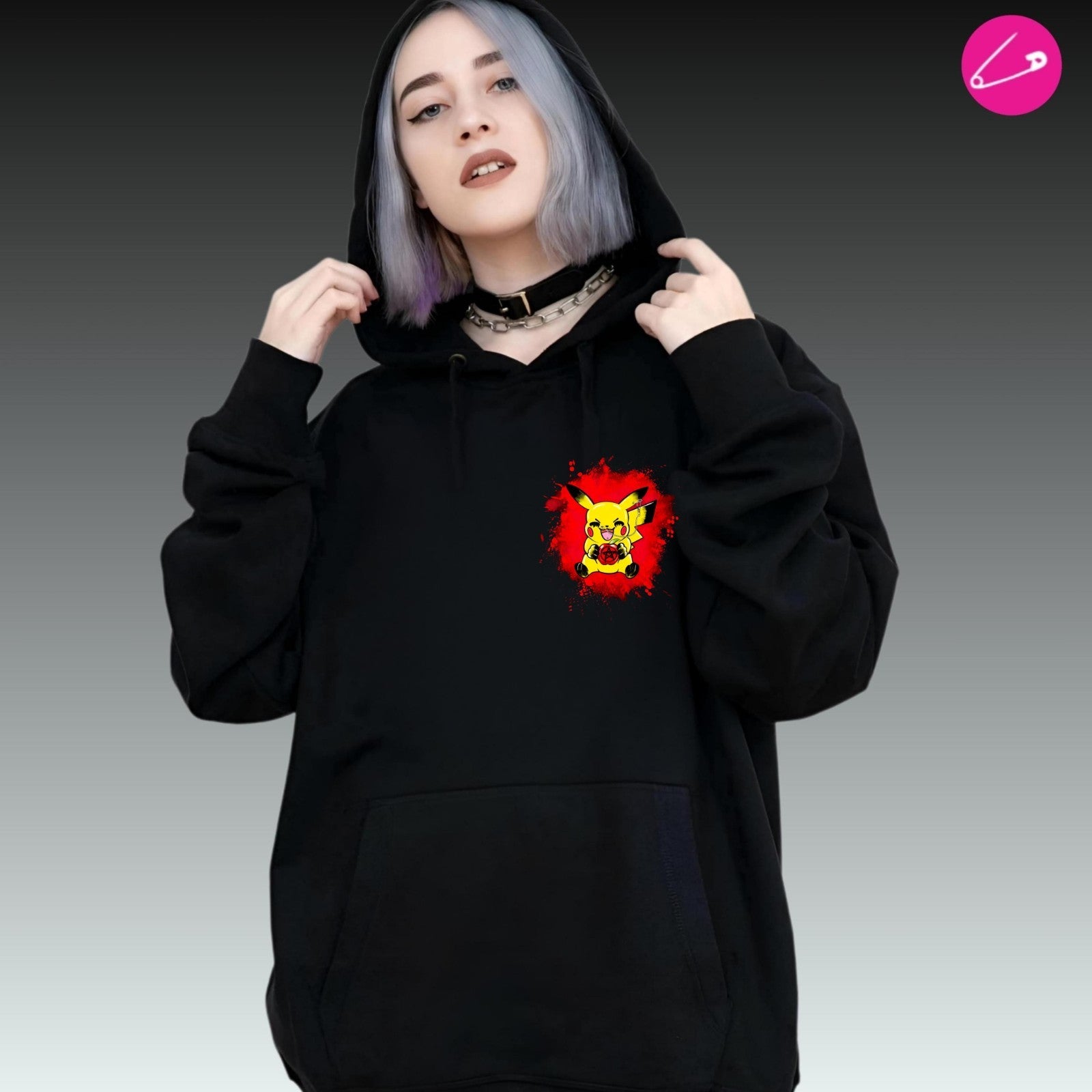 Punk'd Image Punkachu Alternative Gothic Punk Rock Funny Grunge Occult Skater Emblem Hoodie