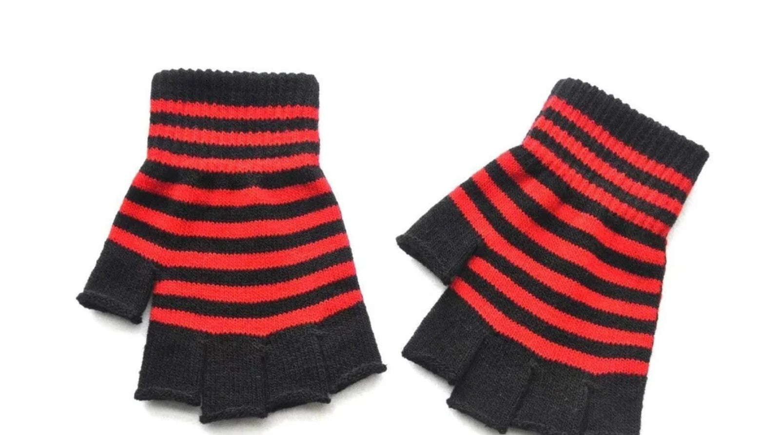 Red Striped Alternative Gothic Punk Rock Skater Grunge Occult Fingerless Gloves