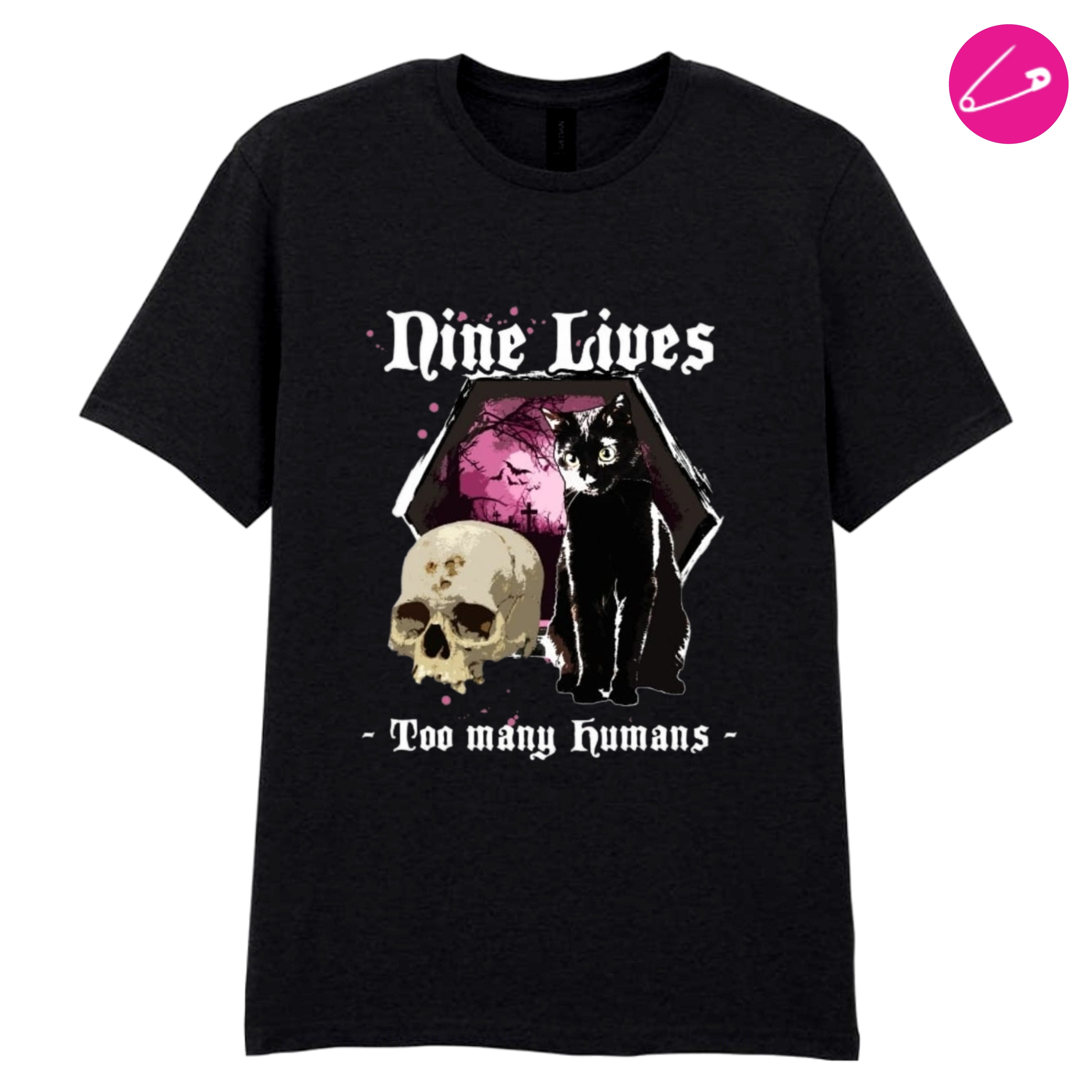 "Nine Lives Too Many Humans" Gothic Alternative Occult Emo Punk Rock Funny Skater T-Shirt
