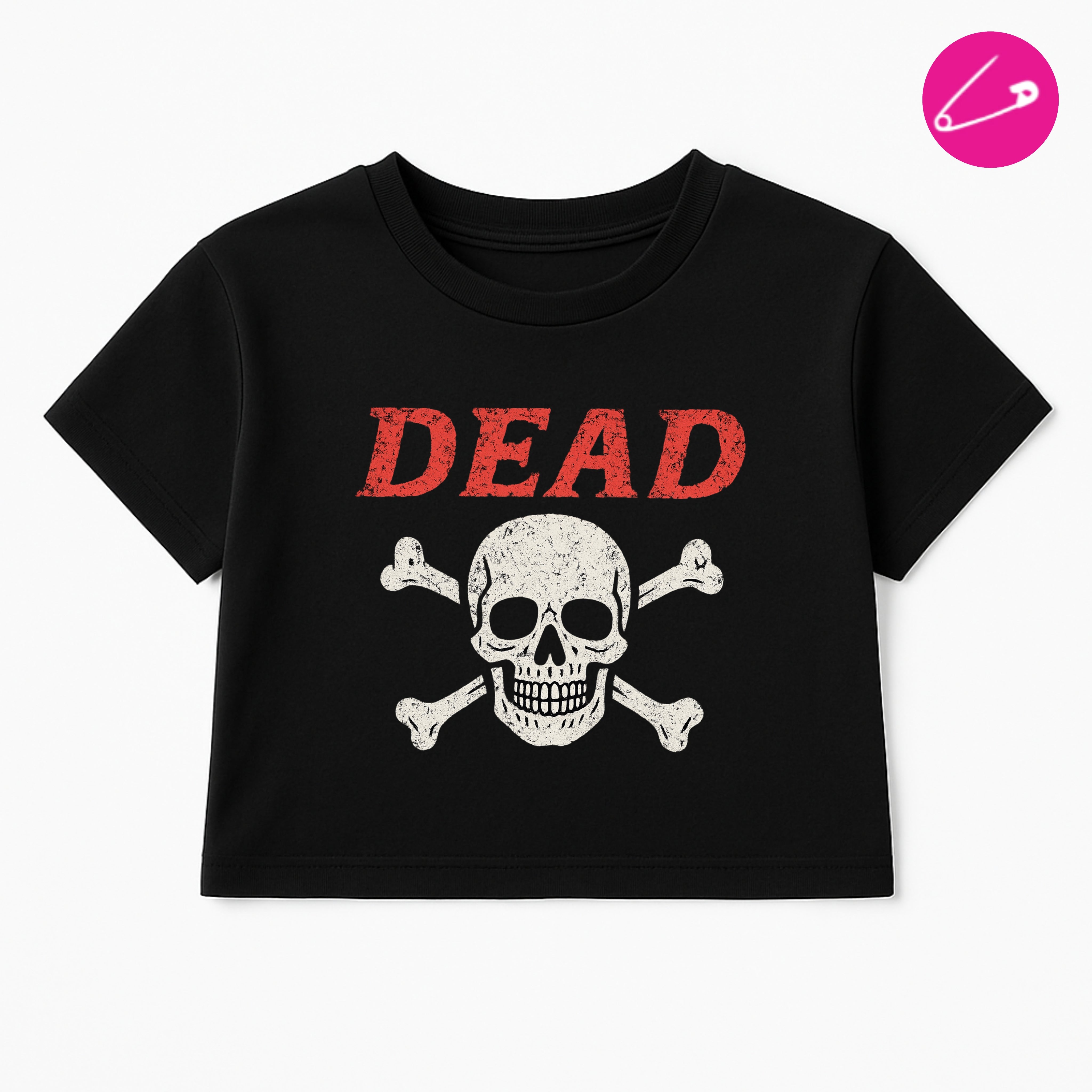 Dead Rock Punk Grunge Alt Emo Skull Crossbones Crew Neck Short Sleeve Crop Top