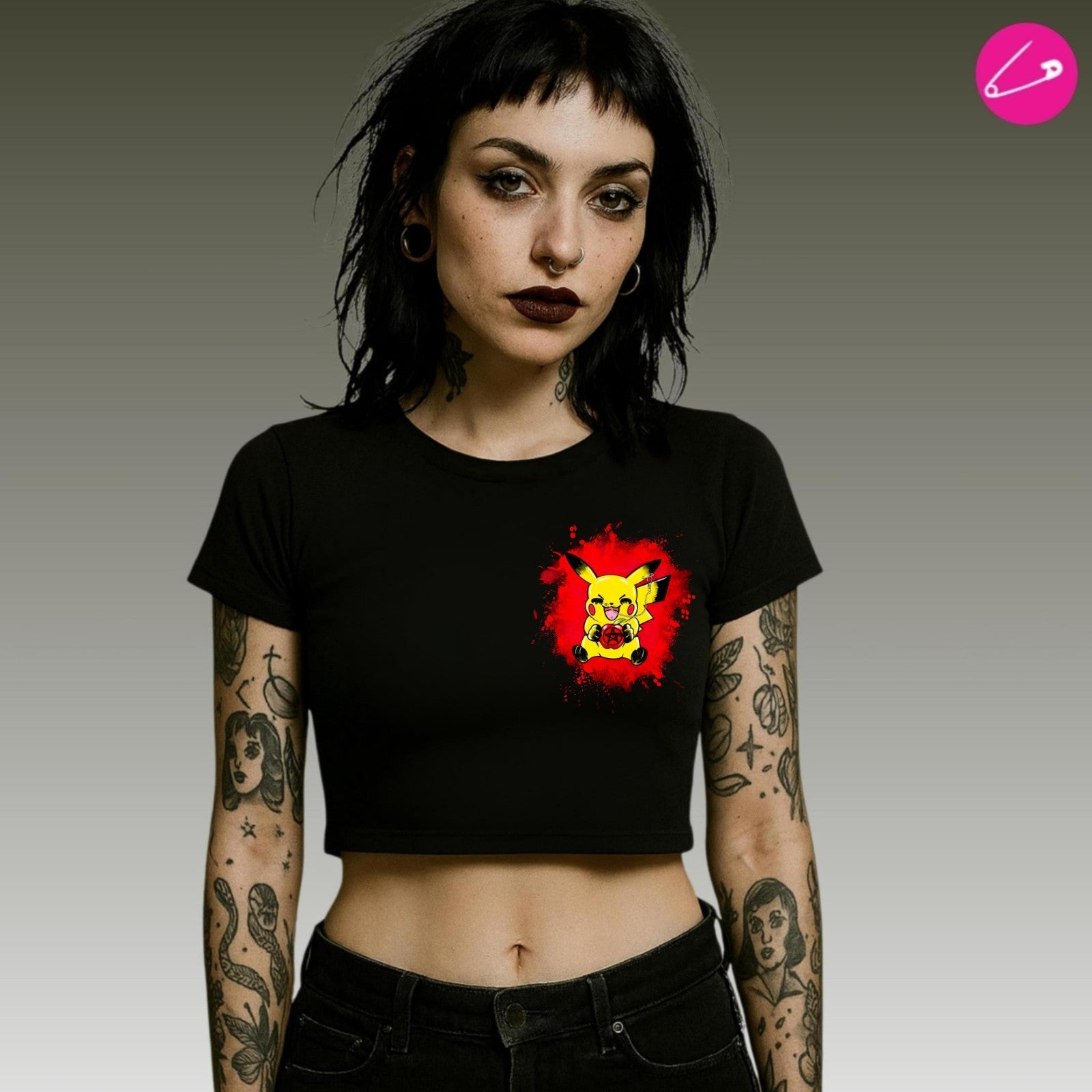 Punkachu Alternative Gothic Punk Rock Funny Grunge Occult Skater Emblem Crop Top